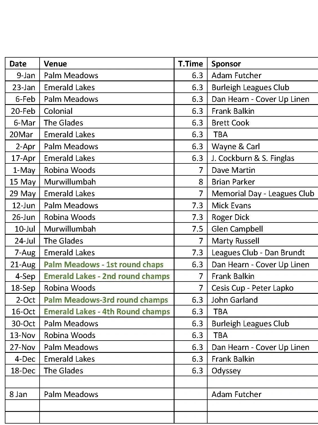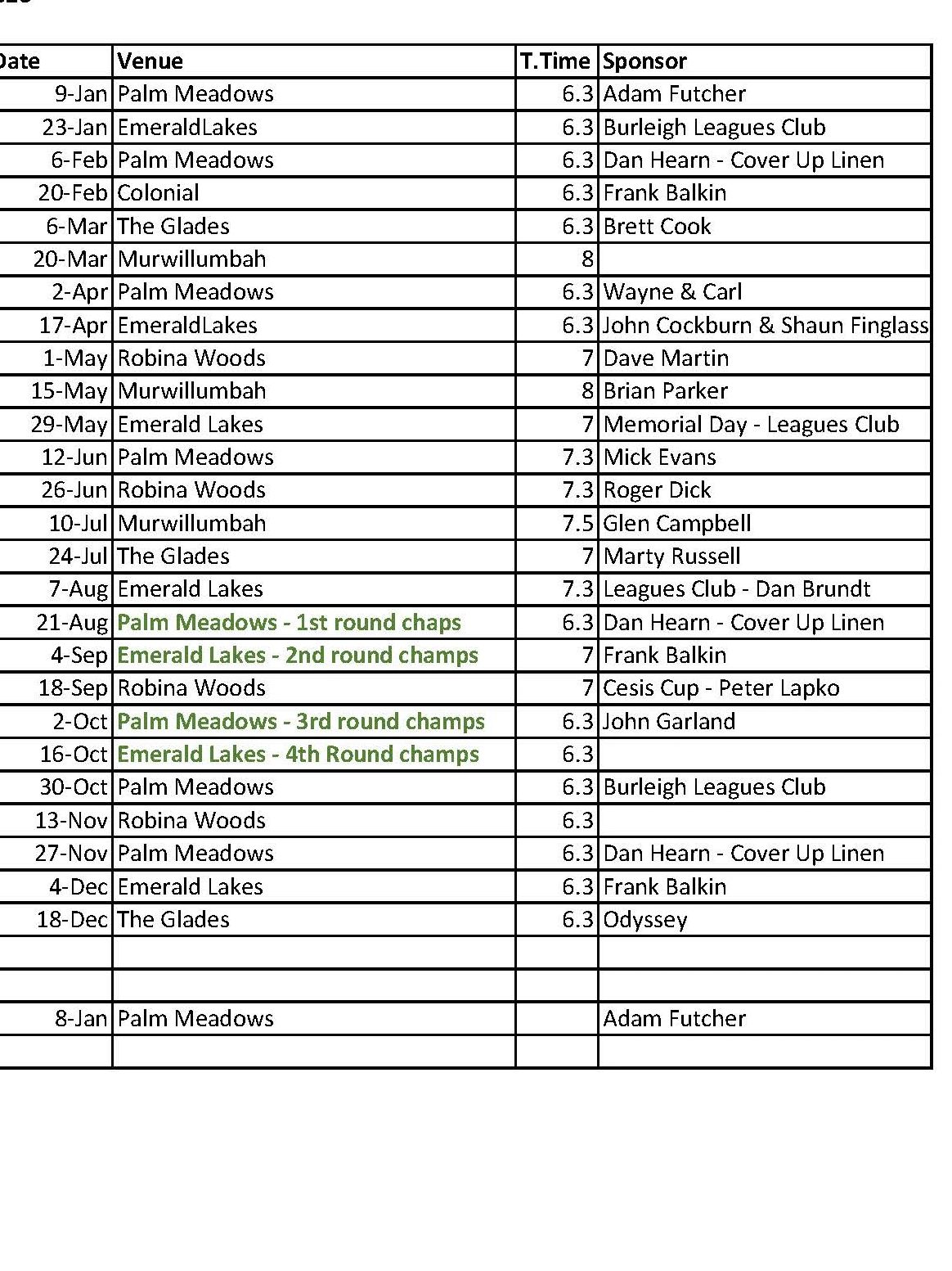 Please see updated 2026 draw with rounds, start times, locations & sponsors